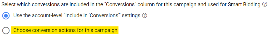Select which conversions are to be taken into account for this YouTube campaign.